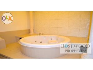 สระว่ายน้ำที่มีอ่างน้ำวนที่นั่งและสปาฟองเจ็ท