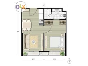 ลักษณะห้องและขนาดห้อง - 1 Bed : 34.86 ตร.ม.