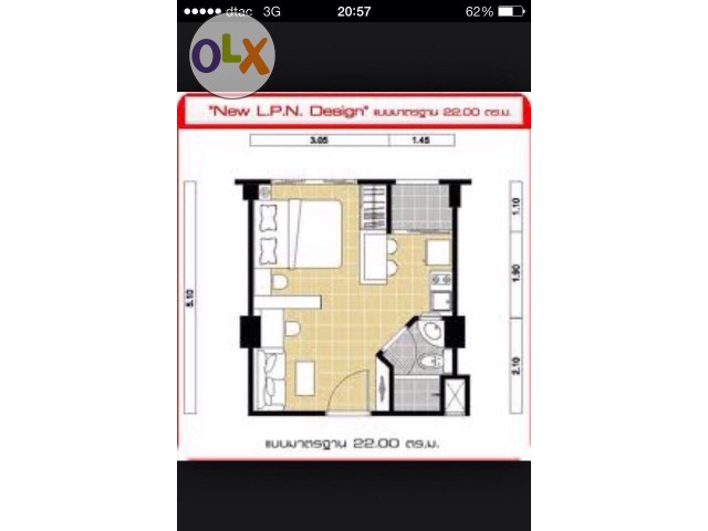 ขนาดพื้นที่ 22.0 ตารางเมตร
