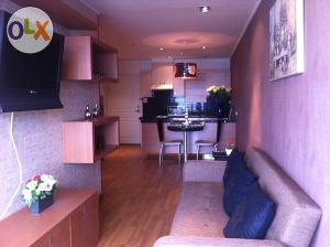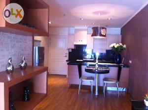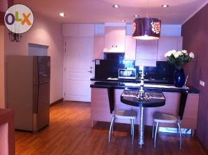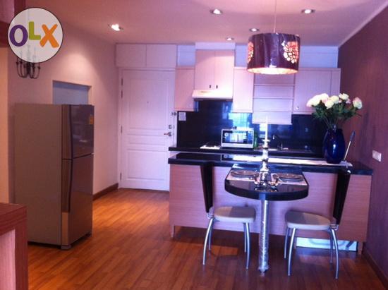 A spacious 2 bedroom, 61 sqm condo in the heart of Sukhumvit, Promphong / Thonglor area. The room is newly refurbished, designed by professional interior designer. Nicely decorated in warm contemporary style, fully furnished with best quality built in furnitures, authentic wood flooring, large island built in kitchen, one bathroom with large bathtub. Fully equipped with full scaled electrical appliance: Electrolux washer & built in dryer, 3 air-conditioners, 2 sets of TV, microwave. The room is on high with spectacular river and city skylines.