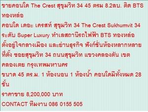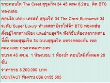 ขายคอนโด The Crest สุขุมวิท 34 45 ตรม 8.2ลบ. ติด BTS ทองหล่อ