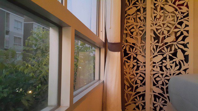 มีต้นไม้สูงถึงหน้าต่างและระเบียง ให้ความร่มรื่นสบายตา