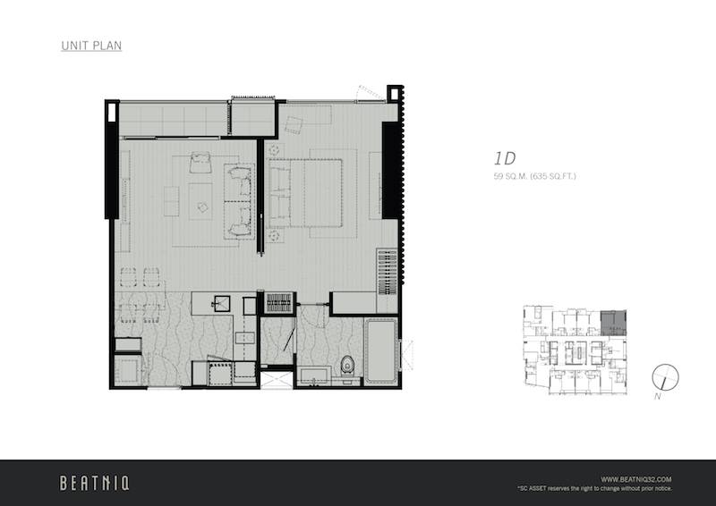 ขายดาวน์ก่อนโอน BEATNIQ สุขุมวิท 32 ห้อง 151B04 ทิศใต้ 1 Bedroom 59 Sqm ชั้น 15 มุมดีที่สุดในโครงการ