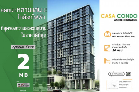 ขาย คอนโด ห้อง Studio CASA CONDO อโศก-ดินแดง 26 ตรม. ราคาดีมากๆ