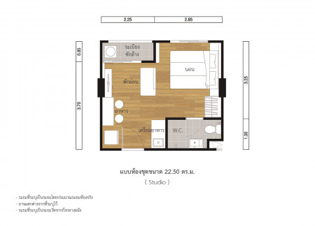 - ชนิด สตูดิโอ ห้องนอน 1 ห้องน้ำ
