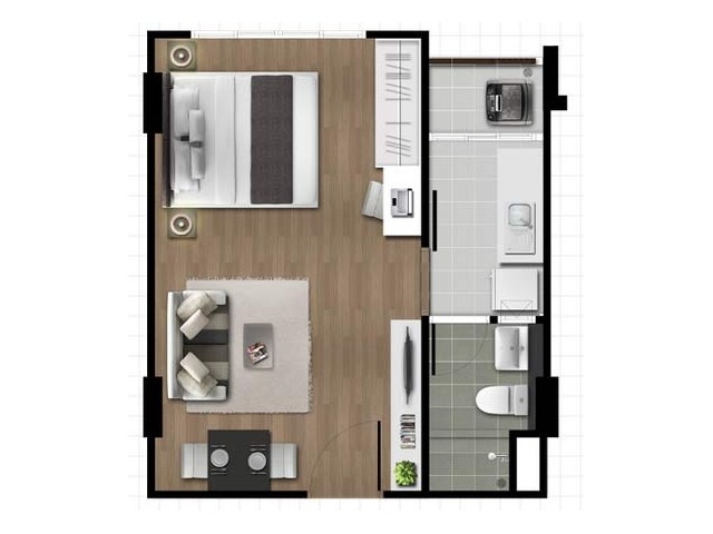 1 ห้องนอน แบ่งแยกสัดส่วนห้องน้ำ ห้องครัว เฟอร์นิเจอร์ครบ พร้อมอยู่ พร้อมด้วย fully furnished ดังนี้