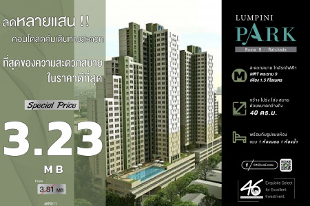 ขาย คอนโด 1 ห้องนอน Lumpini Park พระราม 9-รัชดา 40 ตรม. ห้องมุม ราคาดีมาก คุ้มสุดๆ