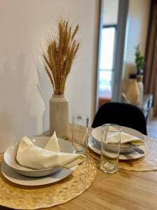 ให้เช่าห้องตกแต่งสวย ห้องนั่งเล่นเฟอร์และบิ้วอินครบ วิวสระว่ายน้ำ คอนโด Oka haus