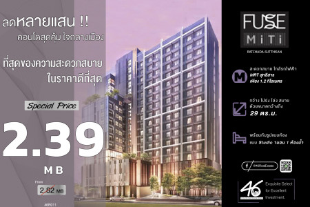 ขาย คอนโด ห้อง Studio fuse miti สุทธิสาร รัชดา 29 ตรม. ขายขาดทุน โครงการทำเลดีใจกลางเมือง
