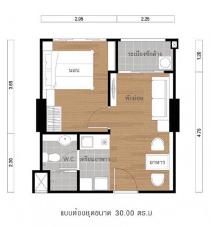 พื้นที่ 30.14 ตรม. แบบ 1ห้องนอน 1ห้องน้ำ ชั้น 9 ตึกA