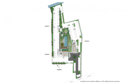 และ พื้นที่สีเขียวขนาดใหญ่ และ สระว่ายน้ำระบบเกลือ ความยาวกว่า 25 เมตร พร้อมสระเด็ก และ พื้นที่พักผ่อนริมส