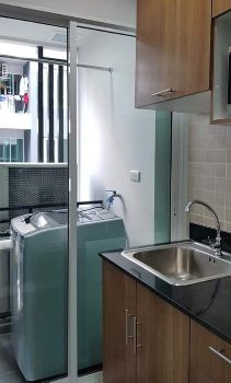 ตู้รองเท้า โต๊ะเครื่องแป้ง ชั้นวางทีวี โต๊ะอาหาร โซฟา ครัวบิวท์อินมีประตูห้องกั้นส่วน