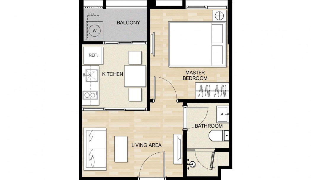 - ชนิด 1 ห้องนอน 1 ห้องน้ำ