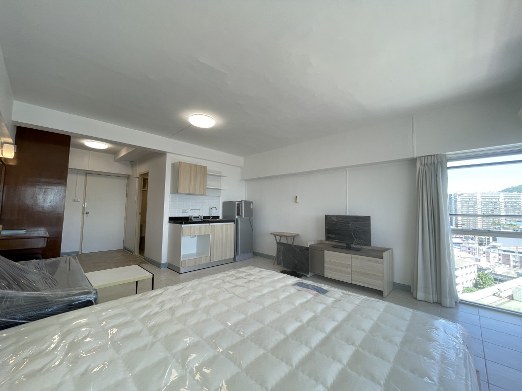 1 ห้องนอน 1 ห้องน้ำ 1 ห้องครัว มุมนั่งเล่น วิวเมืองและทะเล