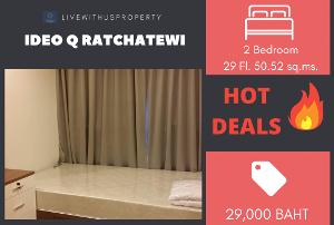 ให้เช่า คอนโด 2 ห้องนอน Ideo Q ราชเทวี 50 ตรม. City View แต่งสวย ใกล้รถไฟฟ้า
