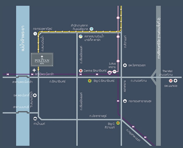 For Rent The Politan Rive (เดอะ โพลิแทน ริฟ) Condominium ใกล้ BTS พระนั่งเกล้า
