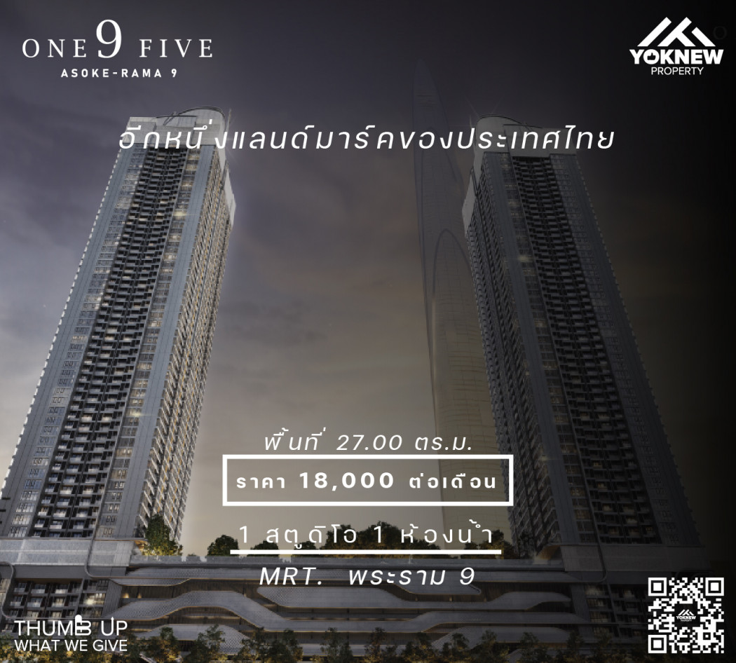 ปล่อยเช่า คอนโด One9Five Asoke - Rama 9 (วันไนน์ไฟว์ อโศก - MRT พระราม 9)