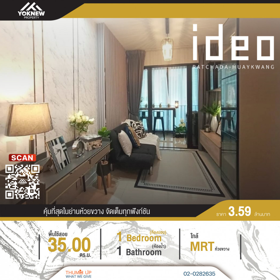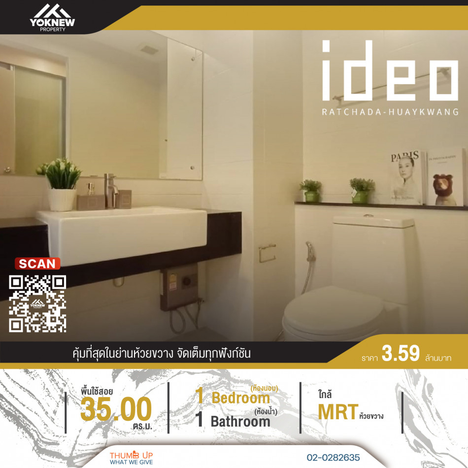 ขายคอนโด Ideo Ratchada – Huaykwang ห้อง Size 35 SQ.M เฟอร์ครบพร้อมเข้าอยู่