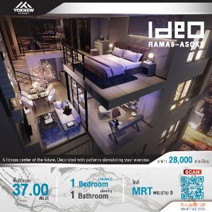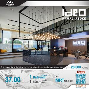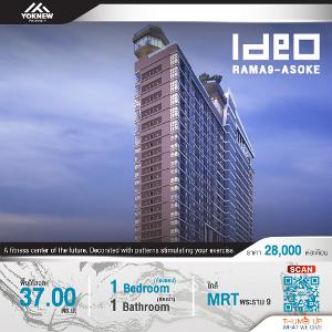 พร้อมให้เช่า คอนโด Ideo Rama9–Asoke 1 BED 1 BATHห้องตกแต่งพร้อมย้ายเข้า Size 37 SQ.M