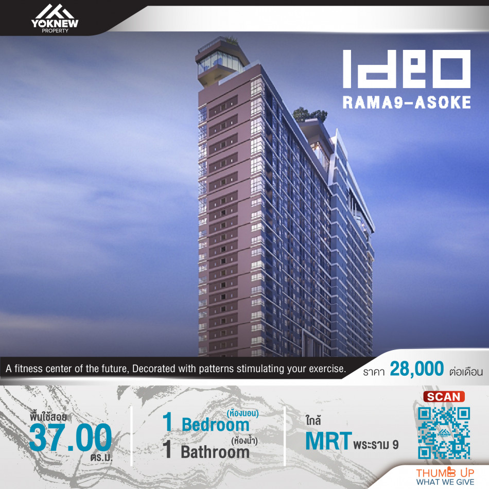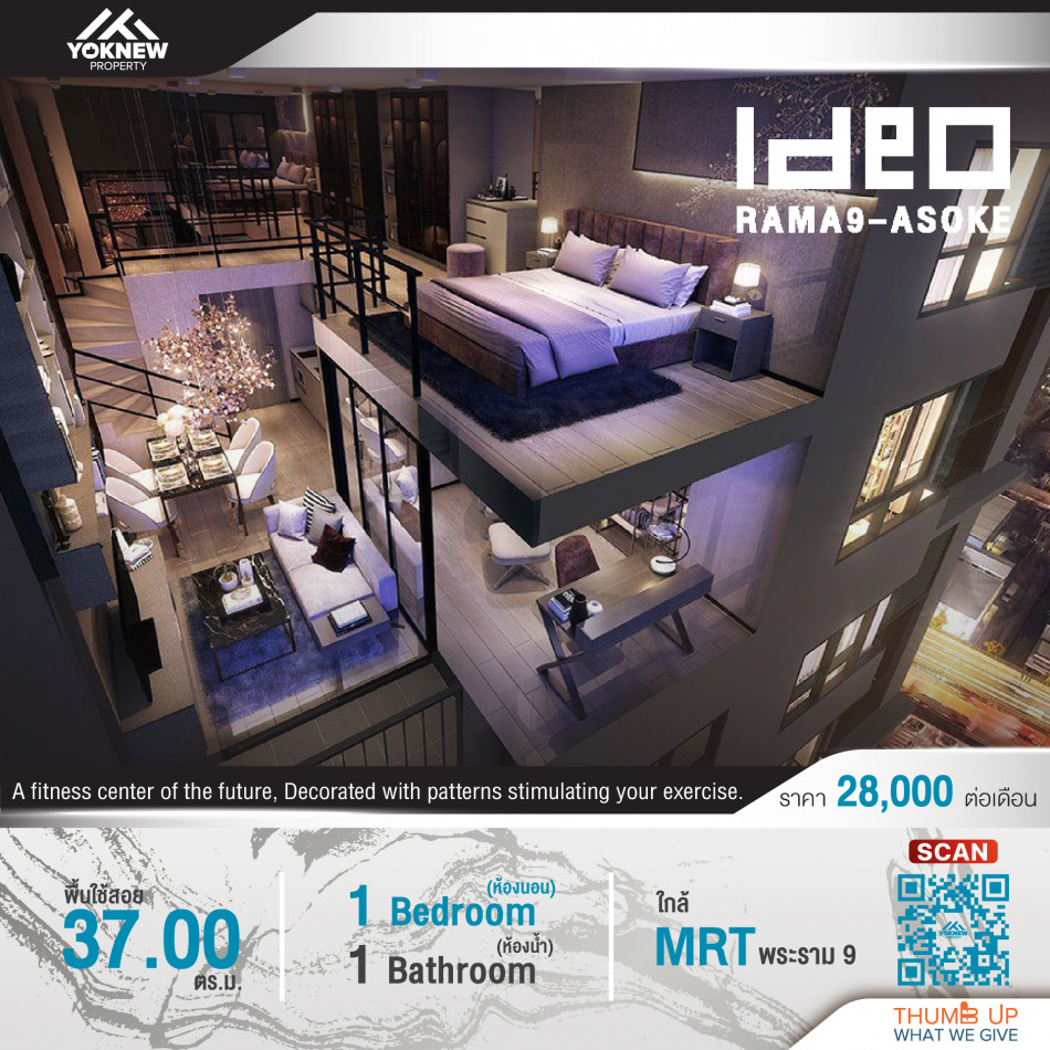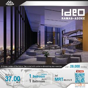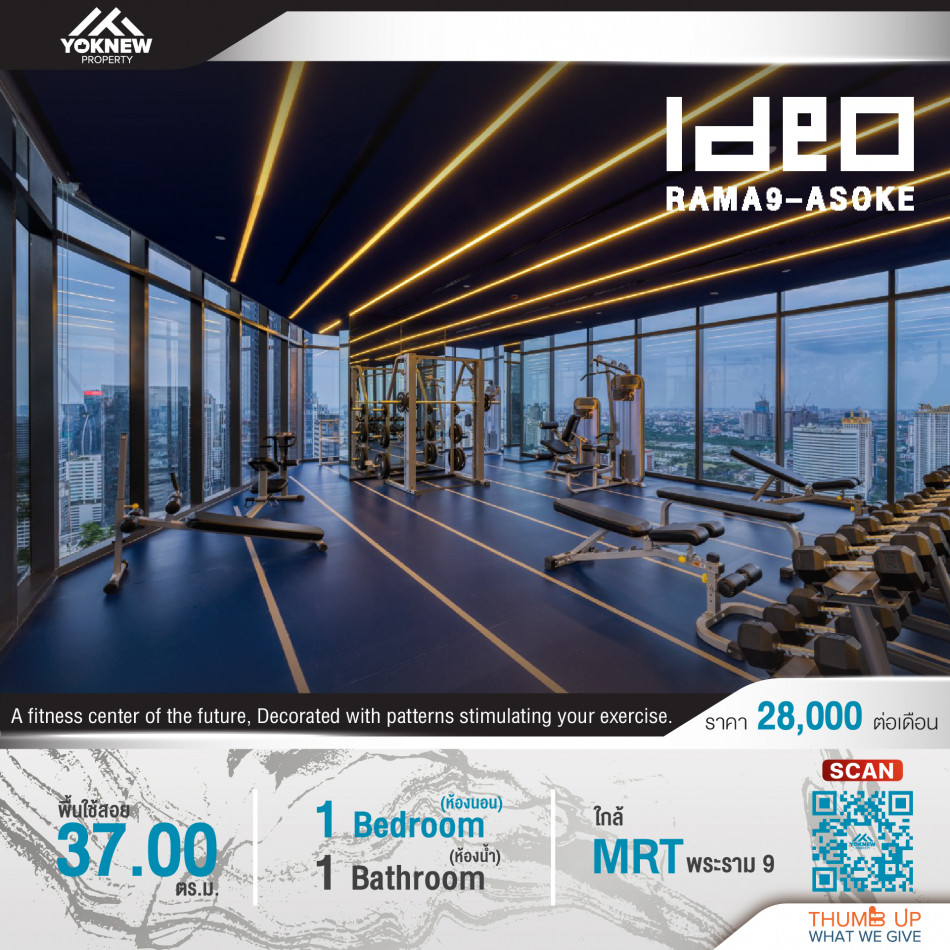 ว่างให้เช่าแล้วนะ คอนโด Ideo Rama9–Asoke 1 BED 1 BATH ห้อง Size 37 SQ.M พร้อมย้ายเข้าอยู่ ชั้นสูง