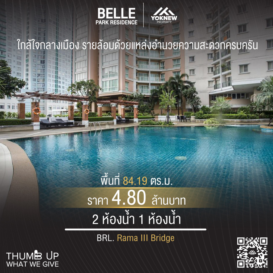 ว่างเช่าห้องขนาดใหญ่ตกแต่งสวย Belle Park Residence ใกล้ BRT สะพานพระราม 3