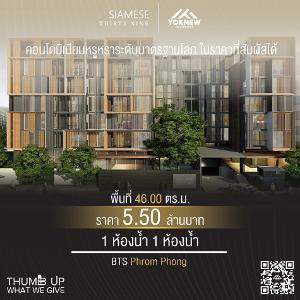 ขาย 1 ห้องนอน ในราคาที่ลดให้พิเศษ ลดเป็นแสนSiamese 39 ห้องนี้คุ้ม ใกล้รถไฟฟ้า BTS พร้อมพงษ์