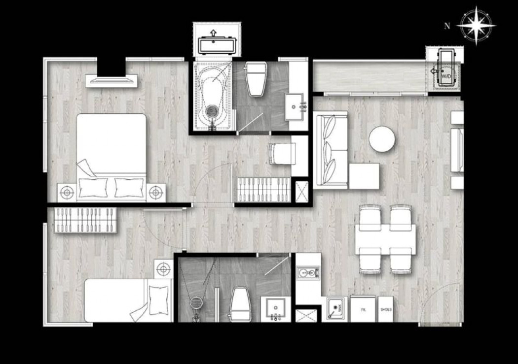 ให้เช่าคอนโด เดอะ ทีค สุขุมวิท 39 ชั้น 4 แบบ 1 ห้องนอน 1 ห้องน้ำ ขนาด 36 ตร.ม