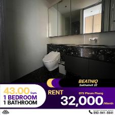 ว่างให้เช่าคอนโด Beatniq Sukhumvit 32 ห้องนอนออกแบบมาได้ดี ขนาด 43 ตร.ม.