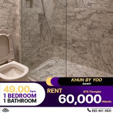 ว่างเช่า 1 ห้องนอน 1 ห้องน้ำ ห้องหรูตกแต่งมาอย่างสวยงาม ห้องน้ำลายหินอ่อน คอนโด Khun by yoo Sansiri