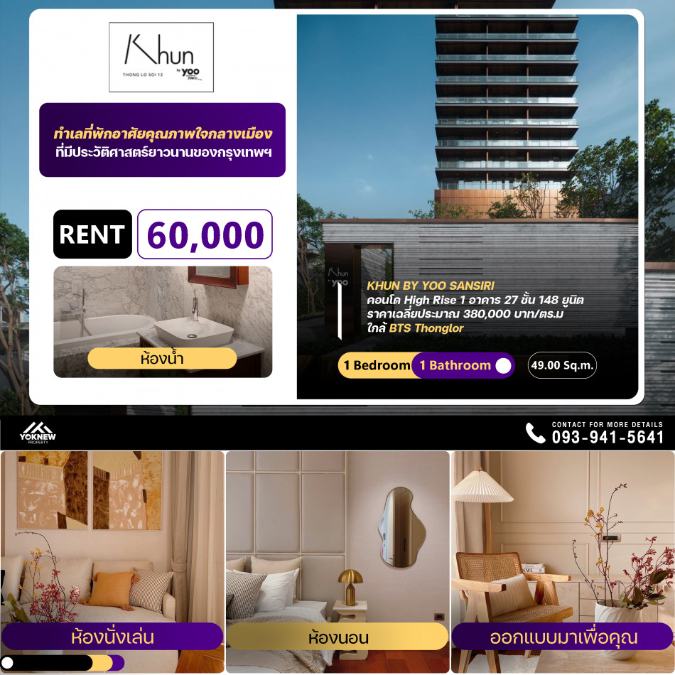 ว่างเช่าคอนโด Khun by yoo Sansiri ราคาดี สิ่งอำนวยความสะดวกครบ ทำเลที่ดีที่สุด พร้อม