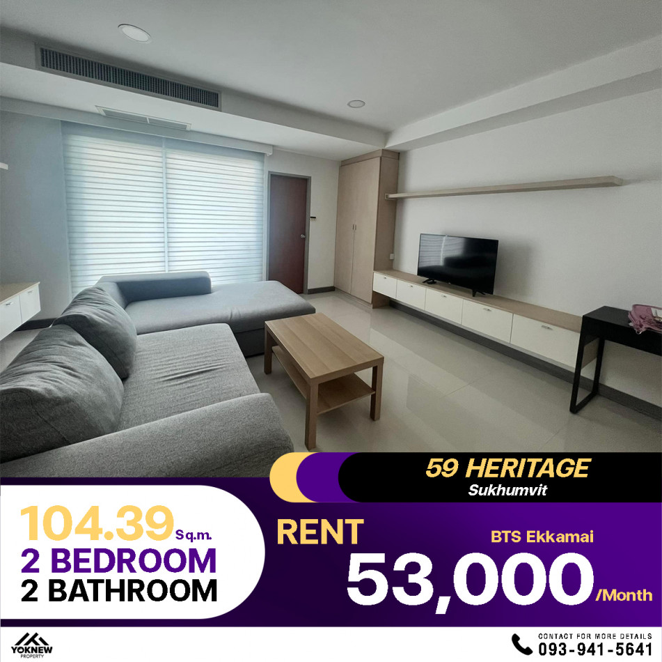 เช่าราคาพิเศษ 2 ห้องนอน 2 ห้องน้ำ ขนาด 104.39 ตร.ม. คอนโด 59 Heritage Sukhumvit