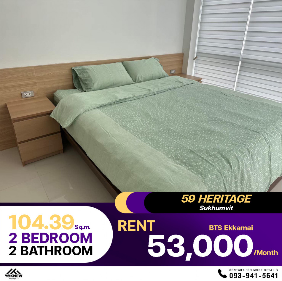 เช่าราคาพิเศษ 2 ห้องนอน 2 ห้องน้ำ ขนาด 104.39 ตร.ม. คอนโด 59 Heritage Sukhumvit