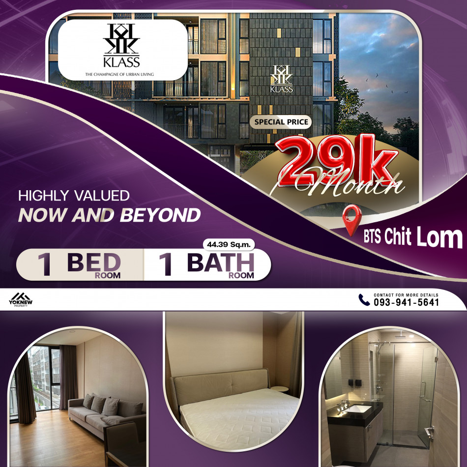 ให้เช่า คอนโด Klass หลังสวน 35 ตรม. 1 นอน 1 น้ำ ค่าเช่า 23000 ต่อเดือน
