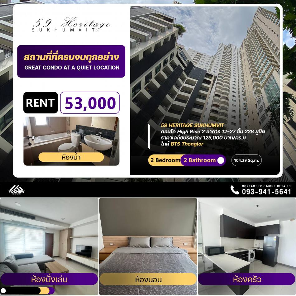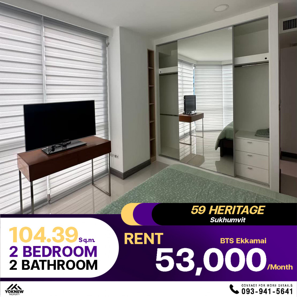 เช่าราคาพิเศษ 2 ห้องนอน 2 ห้องน้ำ ขนาด 104.39 ตร.ม. คอนโด 59 Heritage Sukhumvit