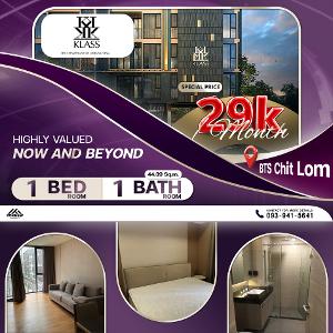 ให้เช่า คอนโด Klass หลังสวน 35 ตรม. 1 นอน 1 น้ำ ค่าเช่า 23000 ต่อเดือน