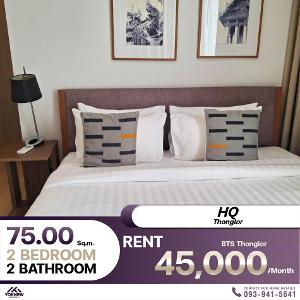 Condo HQ Thonglor 2 ห้องนอน 2 ห้องน้ำ เฟอร์นิเจอร์ครบ เช่าราคา 45,000 บาท