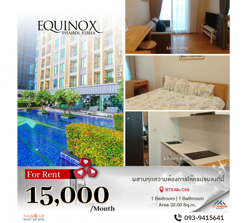 คอนโด EQUINOX พหล-วิภา 1 ห้องนอน 1 ห้องน้ำ วิวสระว่ายน้ำเช่าราคา 15,000 บาท*