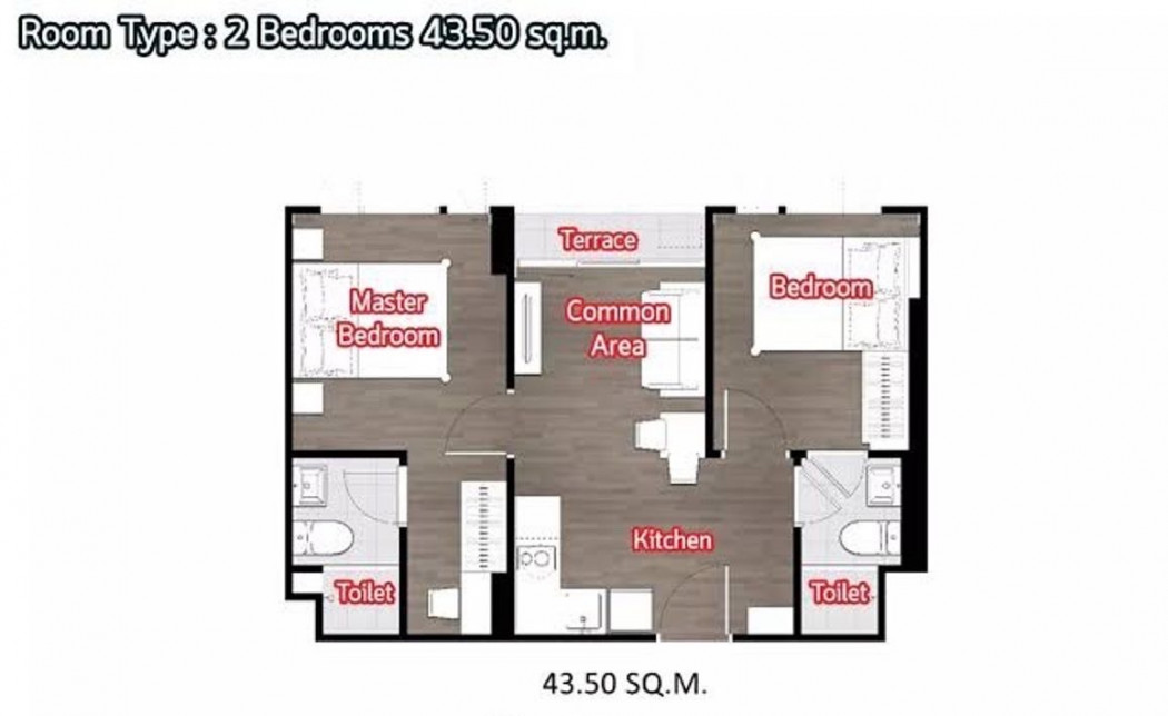 - ชนิด 2 ห้องนอน 2 ห้องน้ำ