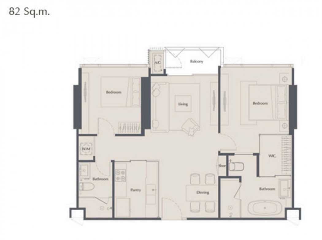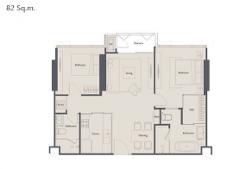 •ขนาดกว้าง 82 ตร.ม. | 2 ห้องนอน 2 ห้องน้ำ
