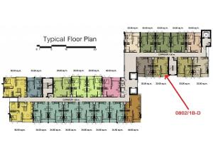 รหัสห้อง 0802/1B-D เนื้อที่ 33 ตร.ม.