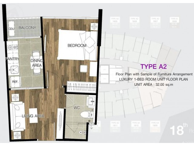 ขนาดห้อง 32 ตร.ม. 1 ห้องนอน 1 ห้องน้ำ 1 ห้องนั่งเล่น และ 1 ห้องครัว ทุกห้องมีประตู แยกกันอย่างชัดเจน